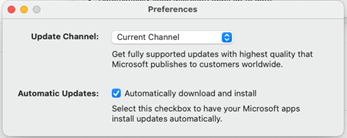 For more information about Preview and Beta channels, see Compare Microsoft 365 Insider channels and Let Mac users choose Microsoft 365 Insider for themselves by using Microsoft AutoUpdate (MAU). |