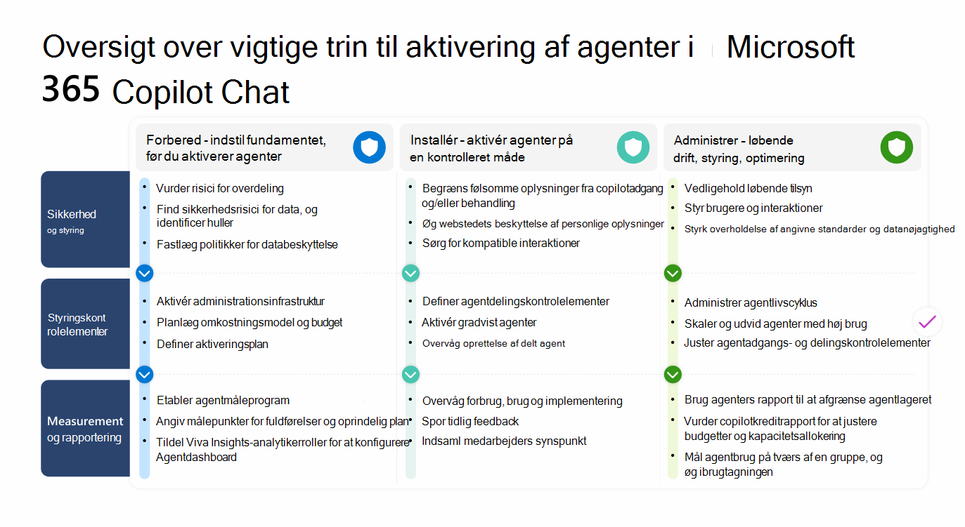 - Udrulningskompleksitet – agenter i Microsoft 365 Copilot introducere nye administrationsværktøjer og -processer. Denne vejledning kan hjælpe med at håndtere kompleksiteten af brugeraktivering og omkostningsstyring.