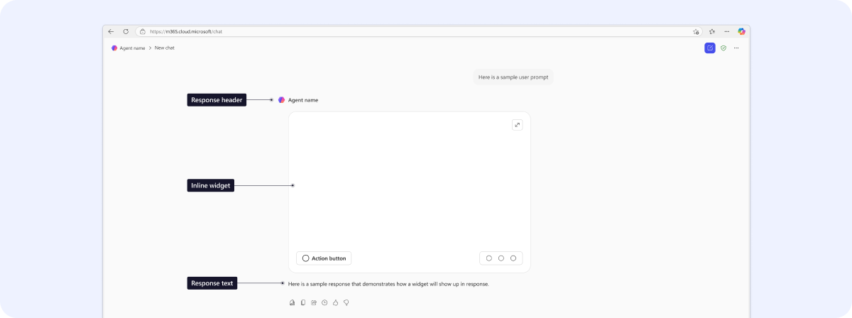 Inline experiences should feel like a natural extension of Copilot. Use Copilot-aligned Fluent 2 components, spacing, typography, and tokens to ensure visual and interaction consistency.
