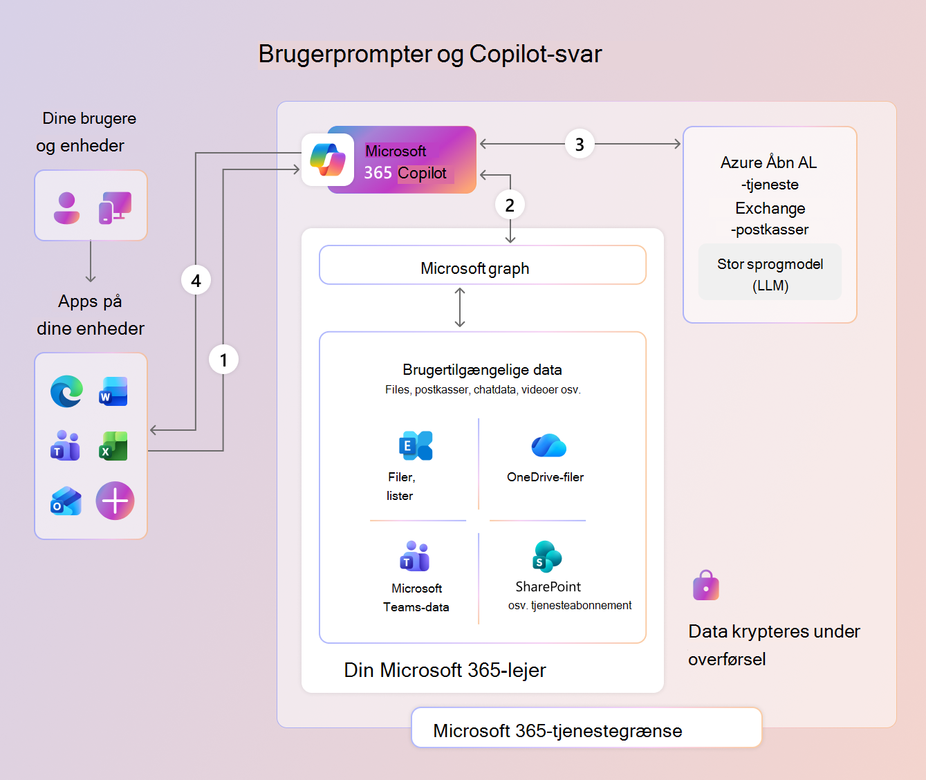Copilot er en delt tjeneste på samme måde som mange andre tjenester i Microsoft 365. Når du bruger Copilot i din lejer:
