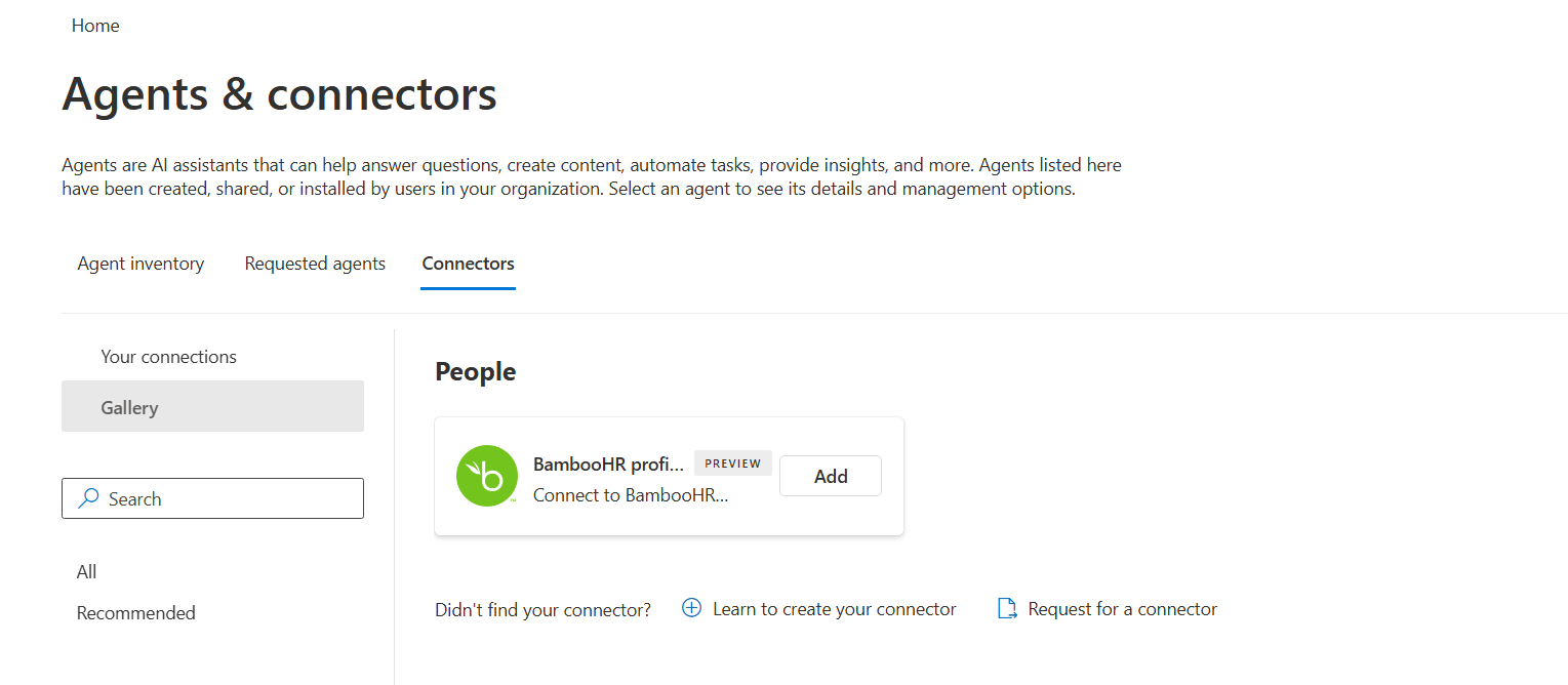 Add BambooHR Microsoft 365 Copilot connector.