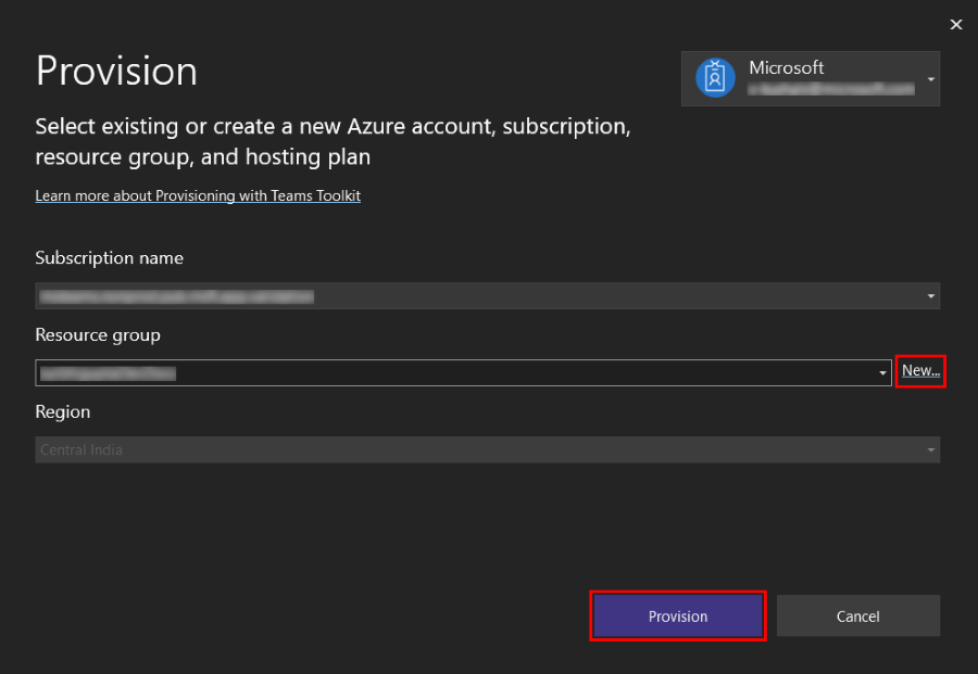 Select Project > Microsoft 365 Agents Toolkit > Provision in the Cloud....