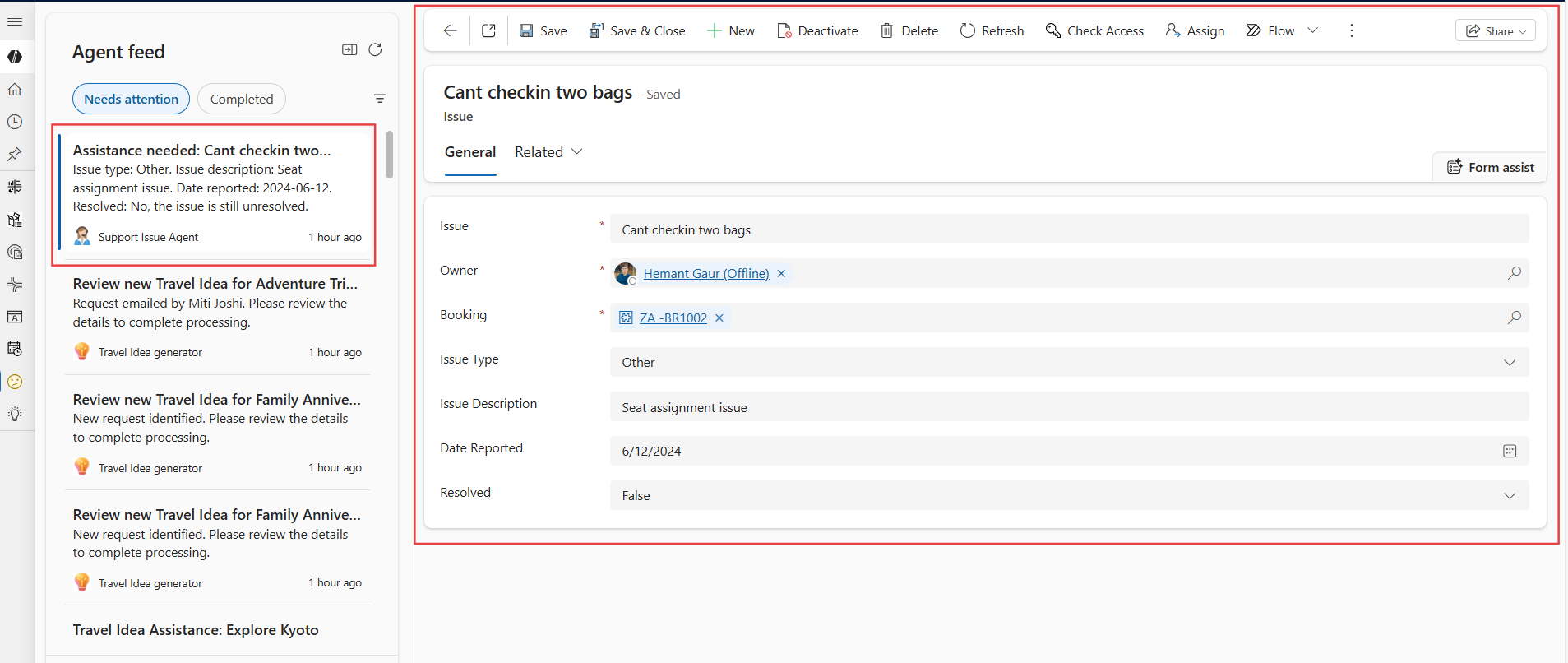 Agentfeedopgaver, der genereres via request_assistance eller request_review MCP-værktøjer, kan referere til en Dataverse-post som et relateret navigationslink i agentbeskrivelsen. Denne reference giver brugerne mulighed for nemt at åbne og gennemse tilknyttede data, når de interagerer med feedelementet.