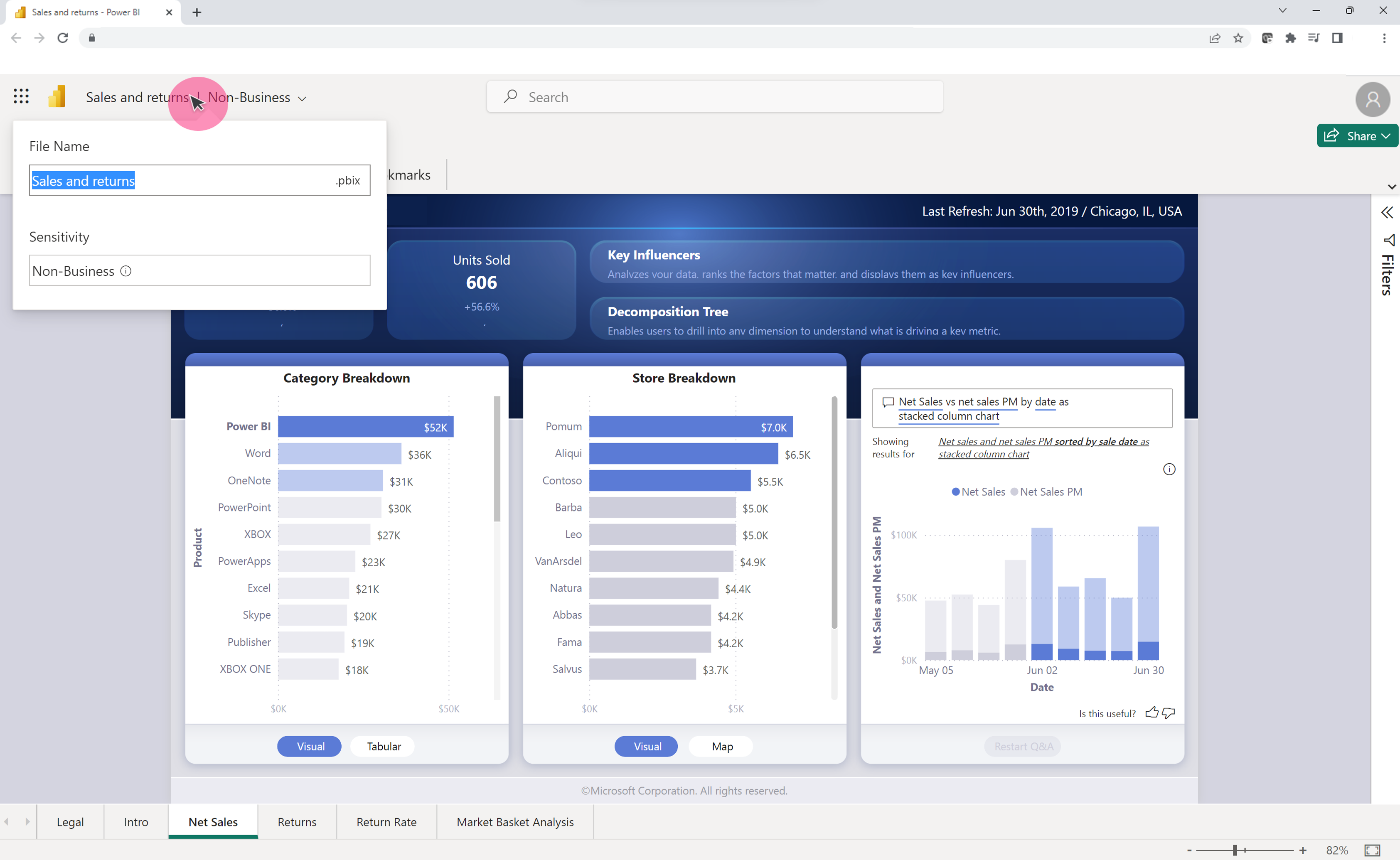Åbn en Power BI-fil, der er gemt i et OneDrive- eller SharePoint-bibliotek