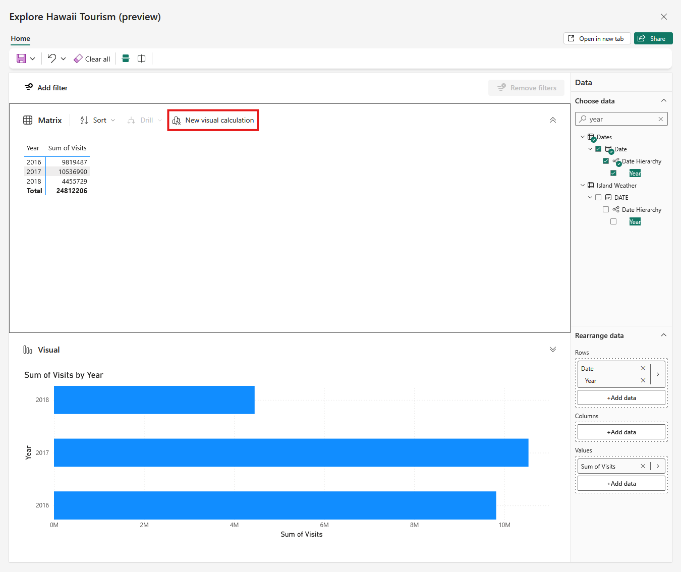 Trin 2. Byg din matrix eller visuelle funktion med Explore (forhåndsvisning)