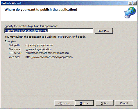 In response to the question on where to publish the application, leave the default location of https://localhost/SSCEDeploymentVB/, and click Finish, as shown in Figure 5.