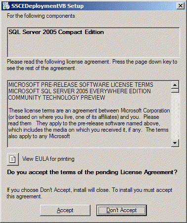 Click Accept on the SSCEDeploymentVB Setup dialog box.