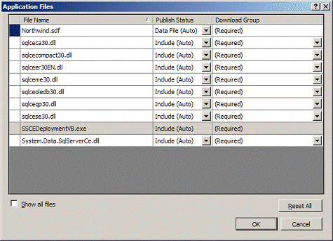 You remove SQL Server Compact Edition as a project prerequisite because you are copying the SQL Server Compact Edition files as part of your application. With SQL Server Compact Edition marked as a prerequisite, the ClickOnce setup utility will perform a central install of SQL Server Compact Edition on the target machine as it did in Exercise 1 of this tutorial.