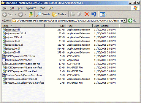 In this window, you can see that the application, the SQL Server Compact Edition DLL files, and the System.Data.SqlServerCe assembly are installed into the application directory.