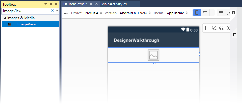 Drag this ImageView onto the Design Surface (this ImageView will be