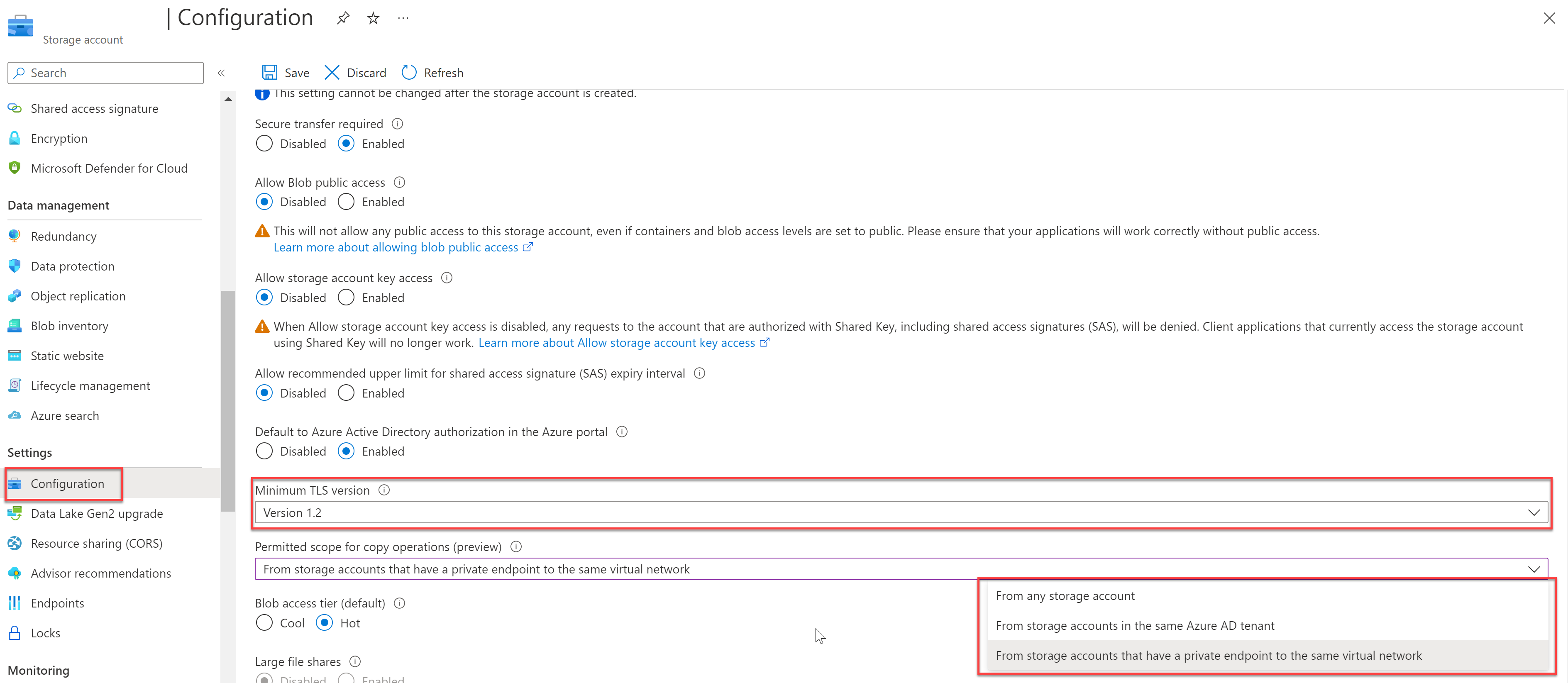 Define the scope for copy operations to restrict copy operations to only those from source storage accounts that are within the same Microsoft Entra tenant or that have a Private Link to the same virtual network (VNet) as the destination storage account.