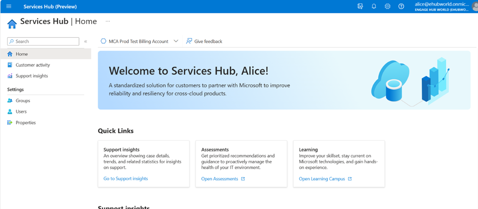 Du kan finde din administrator af Microsoft Engage Center ved at vælge "Brugere" i navigationsmenuen i venstre side og derefter søge efter den eller de enkelte brugere med rollen "Customer Support Manager". Kontakt dem med alle de anmodninger om tilladelser, du har.