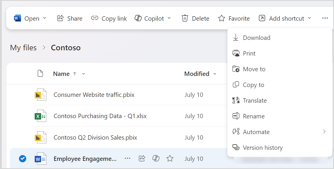 Alternatively, you can get to this feature by selecting More Actions (...) beside the file name or opening the document in the viewer.