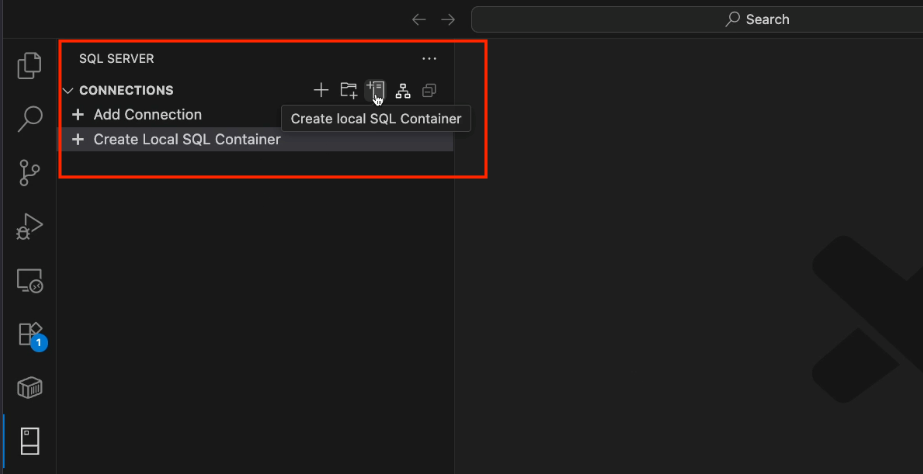 1. In the Connections view, select the Create local SQL Container option from the menu.