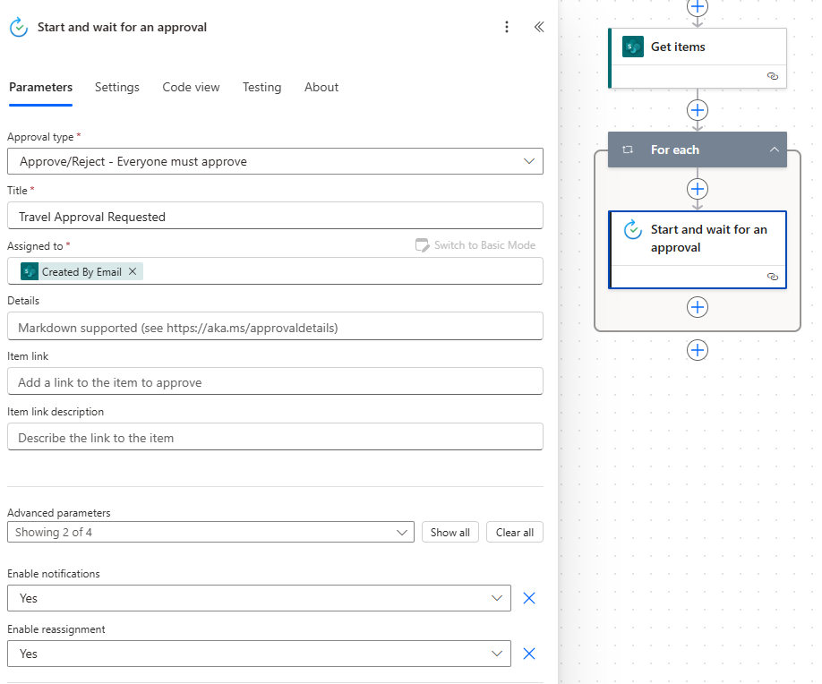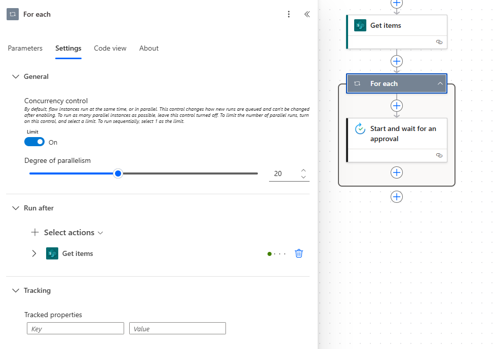 It's possible to have a scenario where you need to send approval actions to a list of users whose names are from a Microsoft List. In this case, the approval action is automatically added to a For each action. This means that by default and the approval will run in sequential order based on the names that it gets from the list. However, you do have the option to have all those actions in the For each run in parallel, which will send all approval actions simultaneously.
