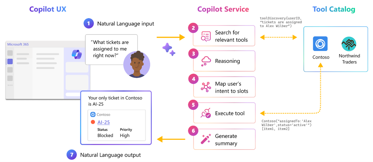 The copilot orchestrator can use semantic reasoning to map the user's prompt to the parameters defined in the app manifest.