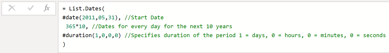 = List.Dates(#date(2011,05,31), 365*10, #duration(1,0,0,0))