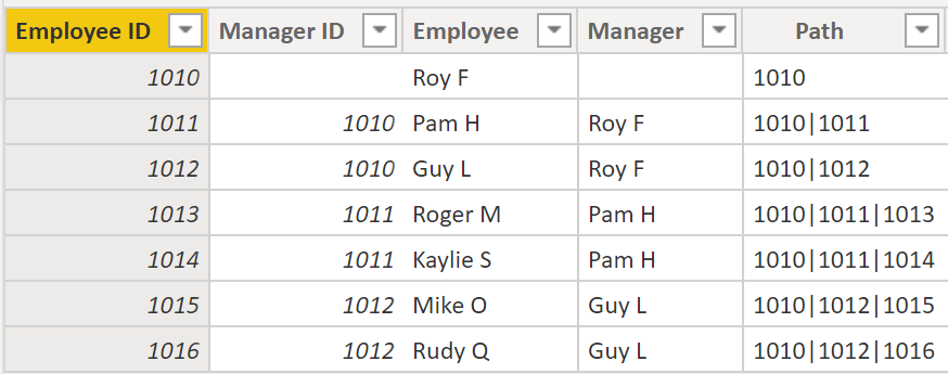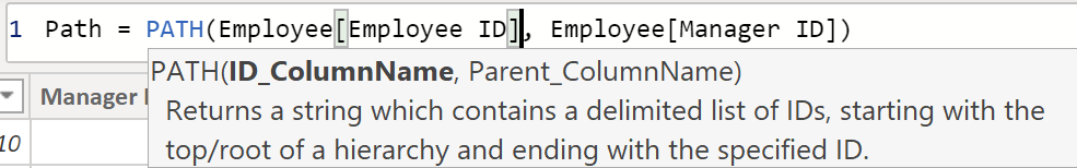 Path = PATH(Employee[Employee ID], Employee[Manager ID])