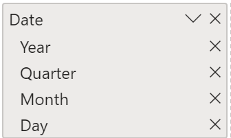 Når du opretter visuals, angiver Power BI automatisk værdier for datotypen som et hierarki (hvis tabellen ikke er markeret som en datotabel).