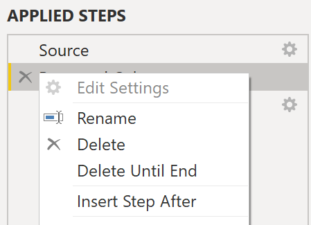 Vælg Transformér data på båndet. Højreklik på det sidste trin i Anvendte trin i ruden til højre, og vælg derefter Indsæt trin efter.