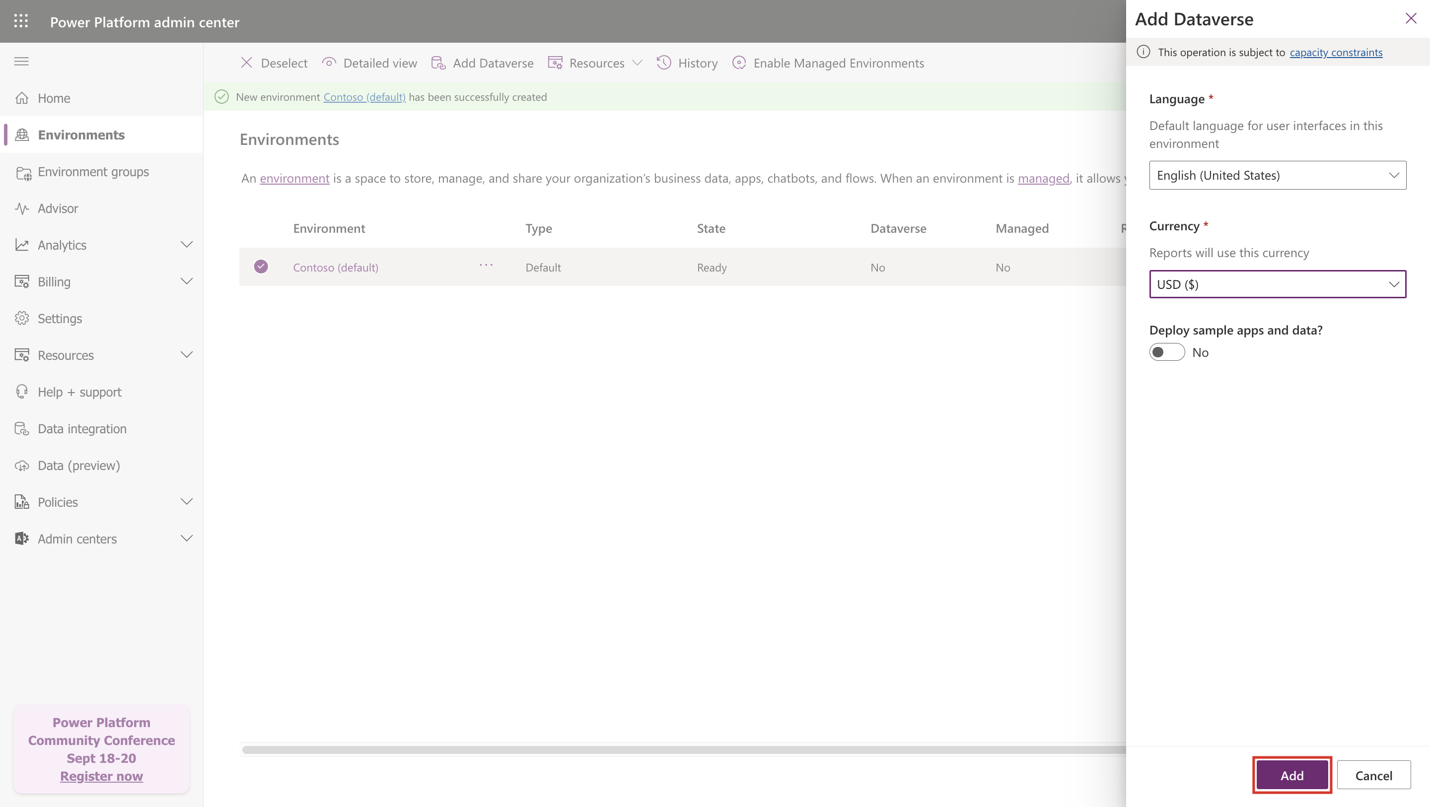 Task - Add Dataverse to a Microsoft Power Platform environment