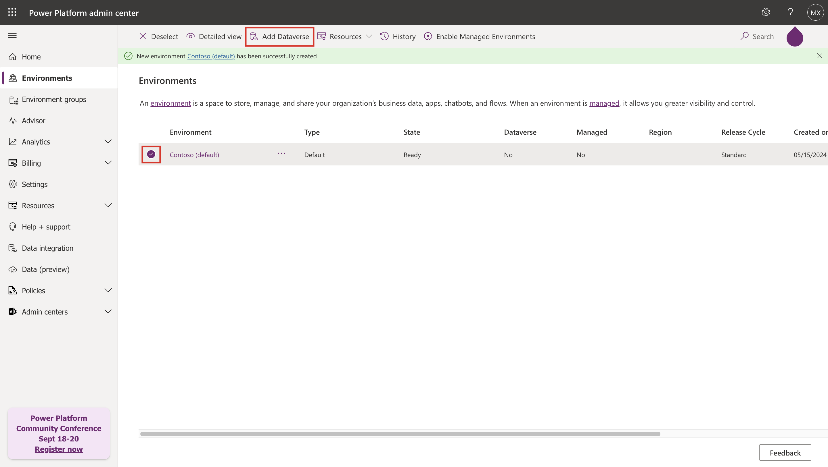 Select Add Dataverse from the command bar.