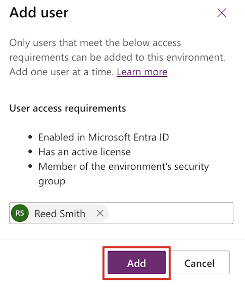 On the side panel, review the information and then select Add.