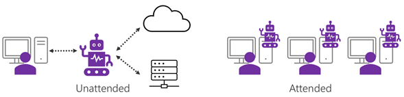 Attended flows automate individual tasks across desktop and web applications. The user can interact with the desktop flow if necessary, such as when a decision is required.