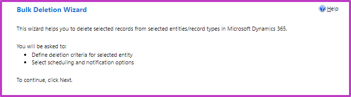 Microsoft Dataverse includes basic bulk row deletion functionality. The purpose of bulk delete is to remove stale data and manage the consumption of system storage by deleting data that you no longer need.