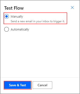 Select Test in the upper-right corner of the screen, select the Manually option, and then select Save & Test.