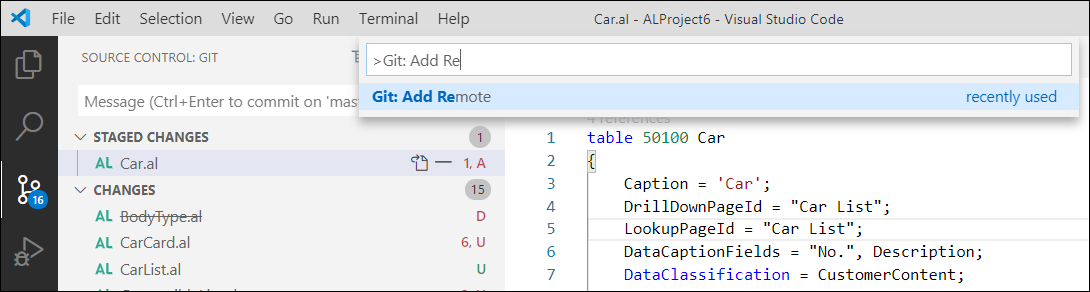 Within Visual Studio Code, there is also an option to link the remote repository. Use View, Command Palette (Ctrl+Shift+P), and search for Git: Add Remote