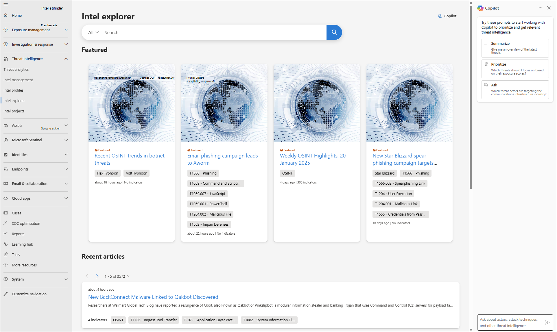 - Microsoft Defender Threat Intelligence artikler og datasæt