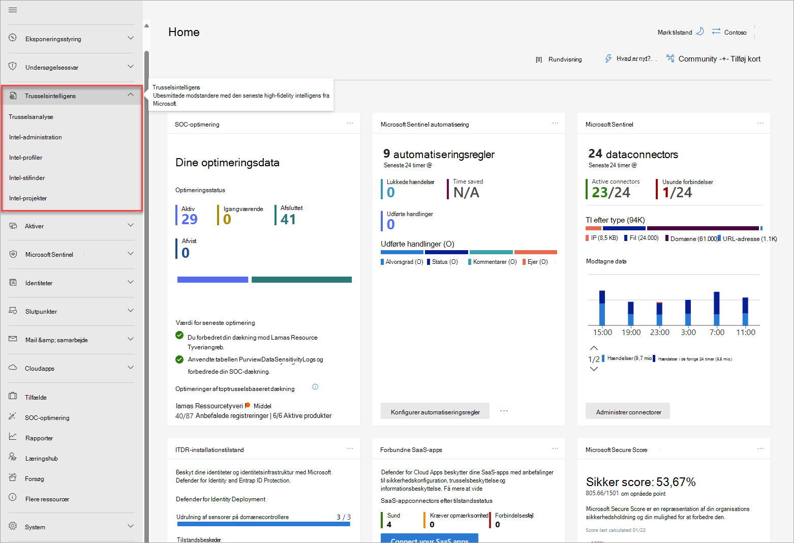 - Intel explorer – Gennemse trusselsintelligens for relevante analyser, artefakter og indikatorer.