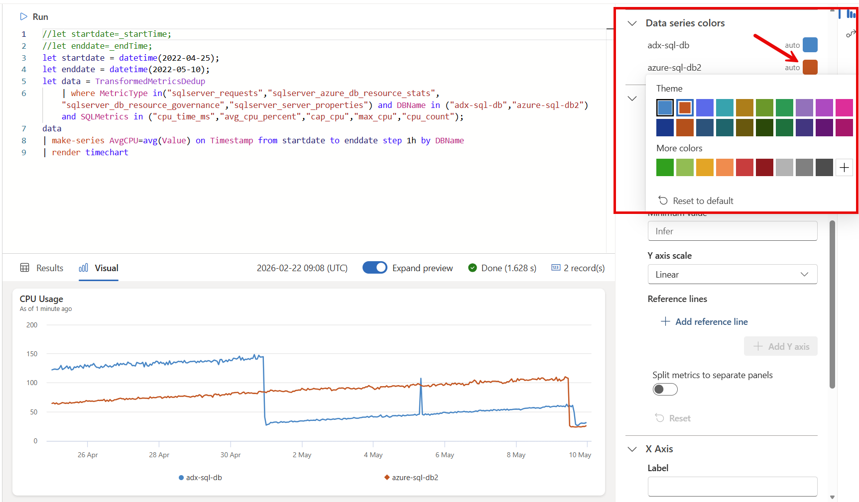 Wählen Sie eine Farbe für jede Datenreihe in Ihrem visuellen Element aus.
