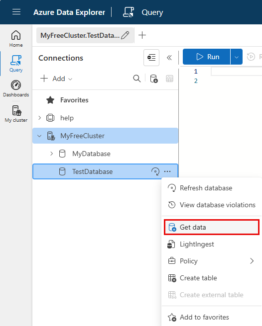 - Melden Sie sich bei der Azure Data Explorer-Webbenutzeroberfläche an.