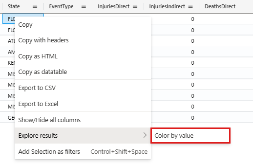 StormEvents | take 10Klicken Sie mit der rechten Maustaste auf einen Wert in der