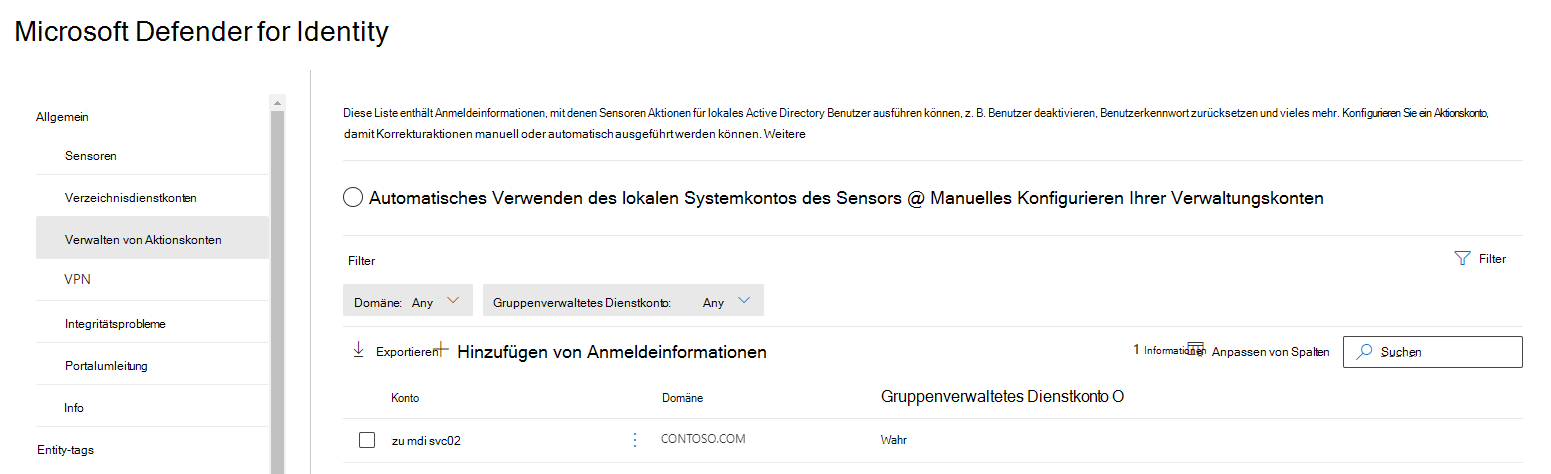 Weitere Informationen finden Sie unter Wartungsaktionen in Microsoft Defender for Identity.