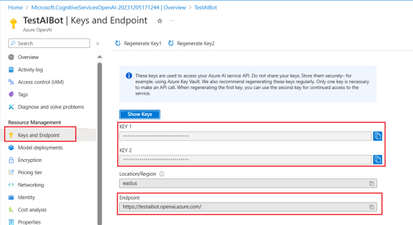 "MicrosoftAppPassword"durch den Wert geheimer Clientschlüssel Ihres Bots. - Ersetzen Sie durch
