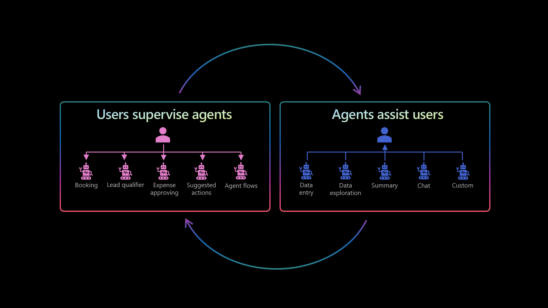 Integrierte Agenten helfen Ihnen, Daten schneller und besser einzugeben, zu untersuchen und zusammenzufassen.