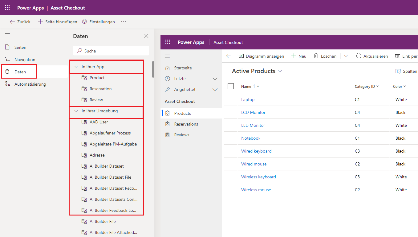 Eine modellgesteuerte App besteht aus Seiten, Daten und Automatisierung. Seiten beinhalten die Navigationspunkte für Ihre App oder die Bildschirme, zu denen Ihre Benutzer navigieren können. Daten umfassen alle Dataverse-Tabellen, die Teil Ihrer App sind, und die Option, weitere Tabellen aus der Umgebung hinzuzufügen. Automatisierung umfasst alle Geschäftsprozessflüsse, die Teil Ihrer App sind, und die Möglichkeit, neue Prozesse zu erstellen.