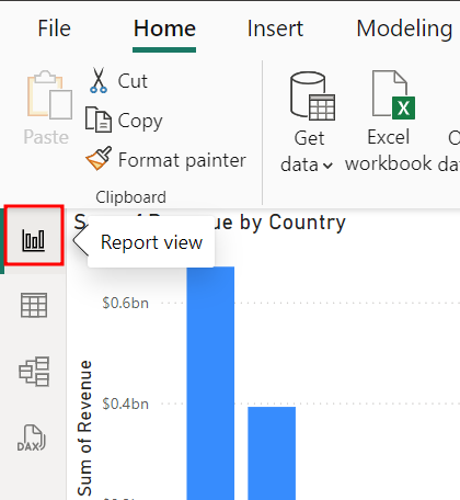 Gehen Sie zur Ansicht Tabelle, indem Sie das Symbol Tabelle im Navigationsmenü links von Power BI Desktop auswählen.