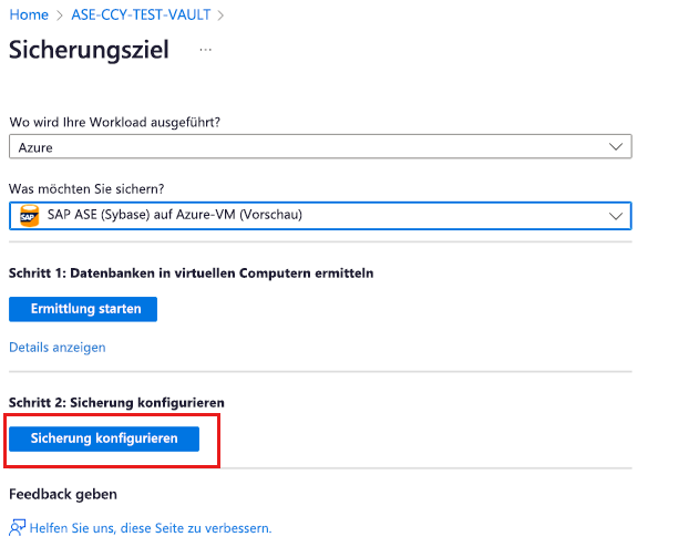 In diesem Artikel wird beschrieben, wie Sie die Sicherung für SAP Adaptive Server Enterprise (ASE) (Sybase)-Datenbanken (ausgeführt auf virtuellen Azure-Computern) mithilfe des Azure-Portals konfigurieren.
