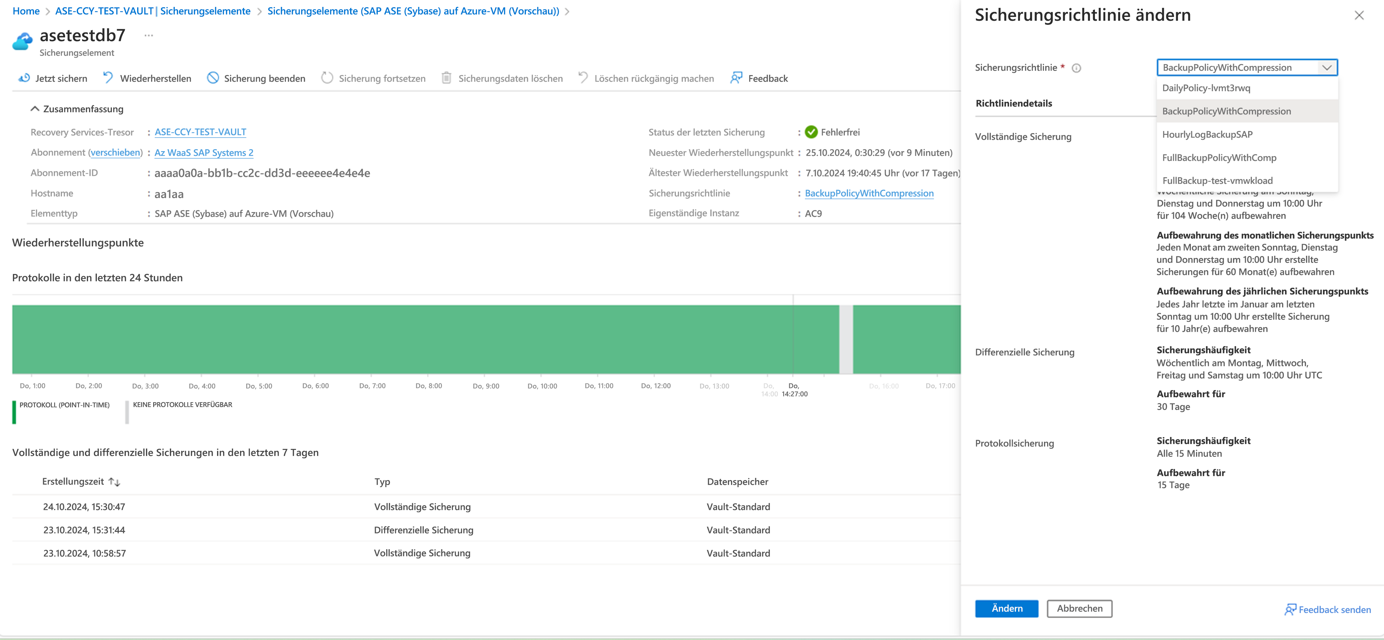 Ändern der Sicherungsrichtlinie