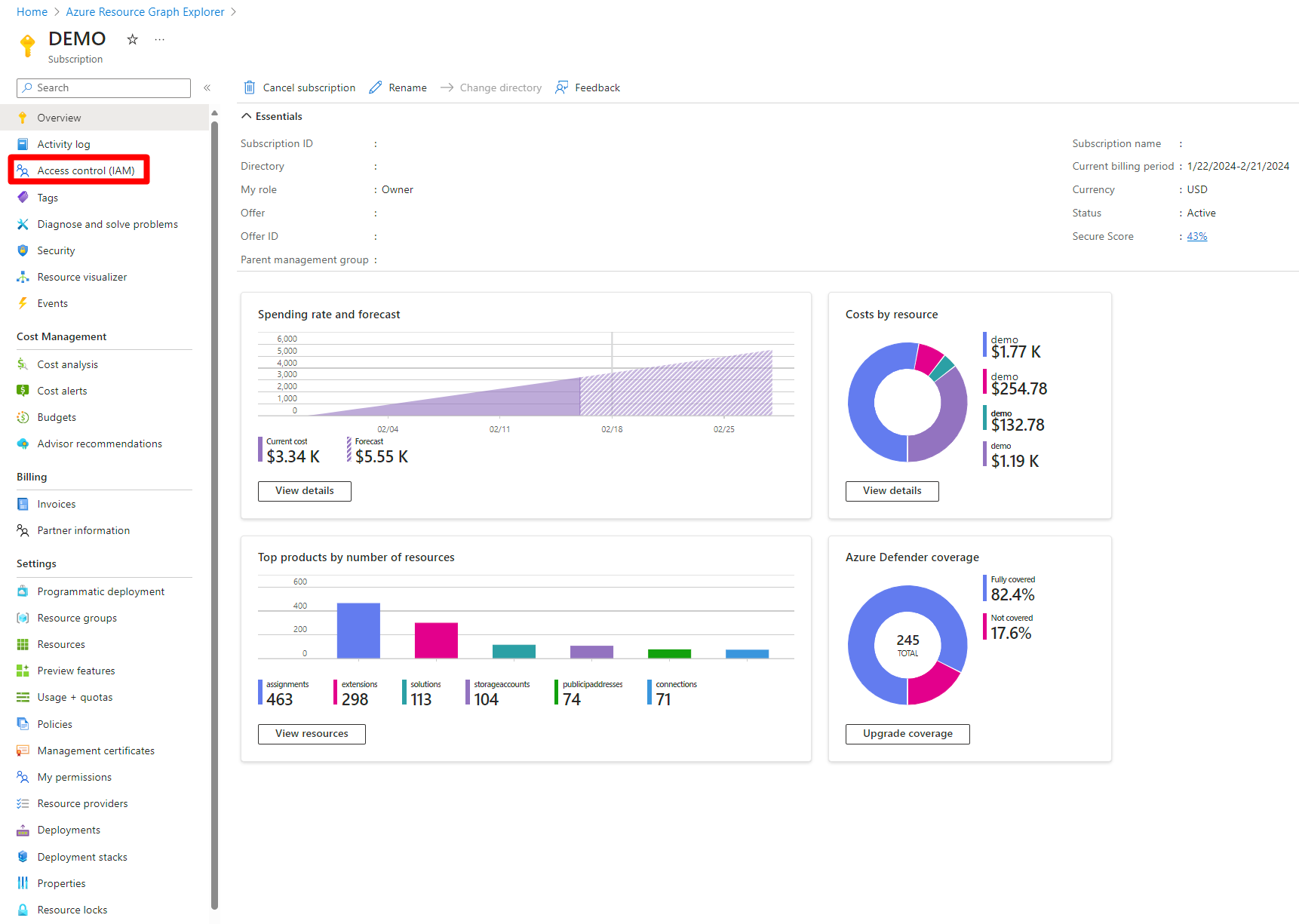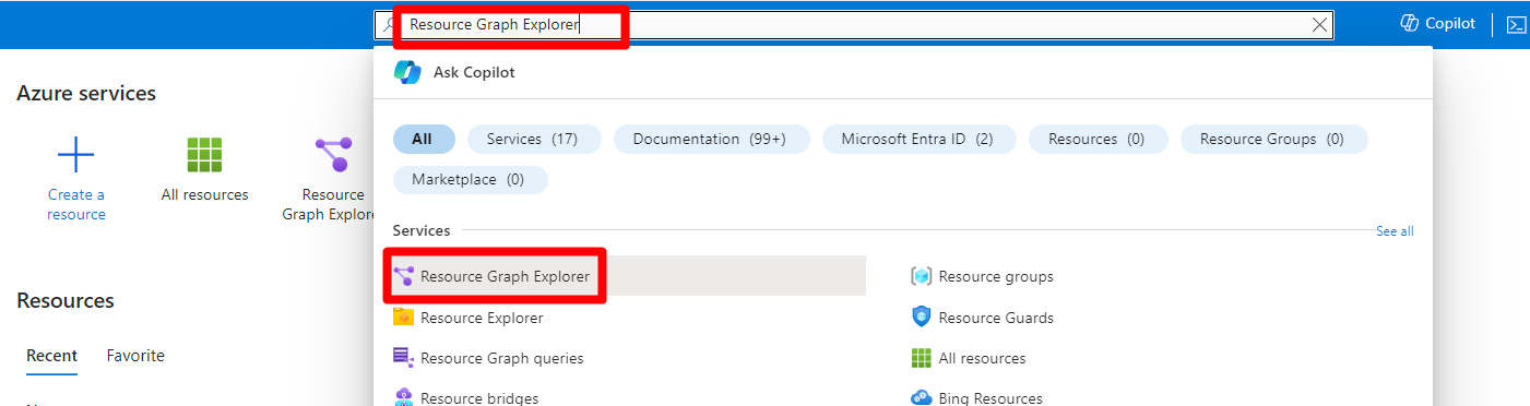 Weisen Sie den Workloadbesitzern im Azure-Portal Berechtigungen mit den Optionen „Alle Ressourcen“ oder „Azure Resource Graph“ zu.