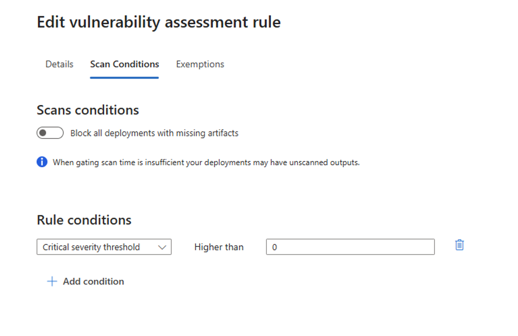 - Wählen Sie Bewertung der Sicherheitsanfälligkeit aus, um eine Liste der definierten Sicherheitsregeln für Gated-Bereitstellungen anzuzeigen.
