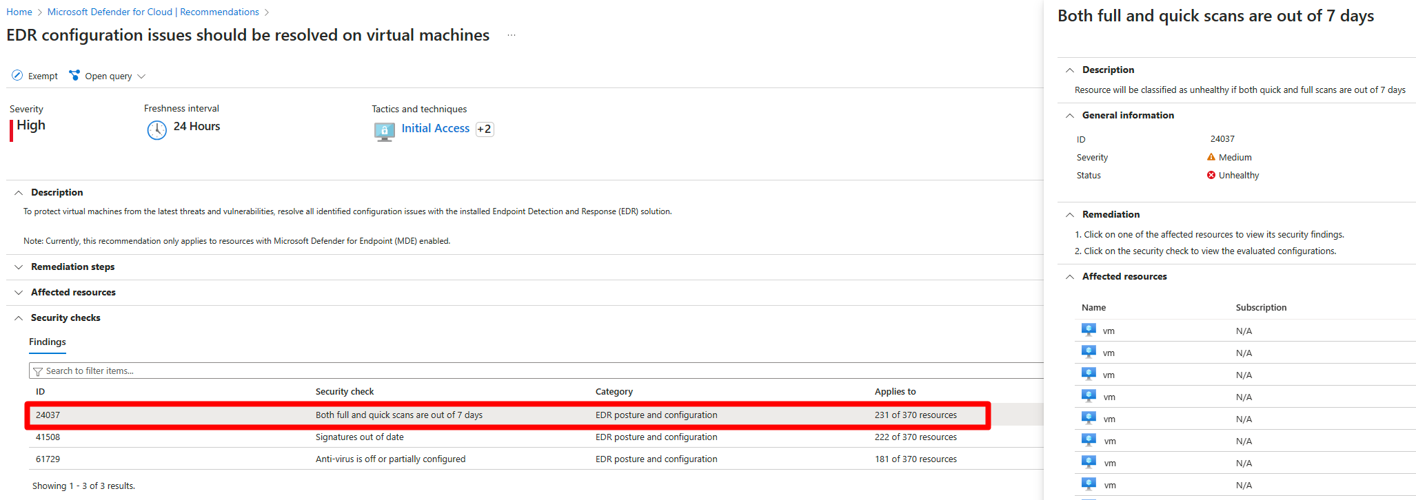 Führen Sie einen Drilldown für die Sicherheitsüberprüfung aus, um die mit der Empfehlung bereitgestellten Schritte zur Behebung anzuzeigen, und führen Sie die Behebung in Defender for Endpoint oder auf dem betroffenen Computer aus.