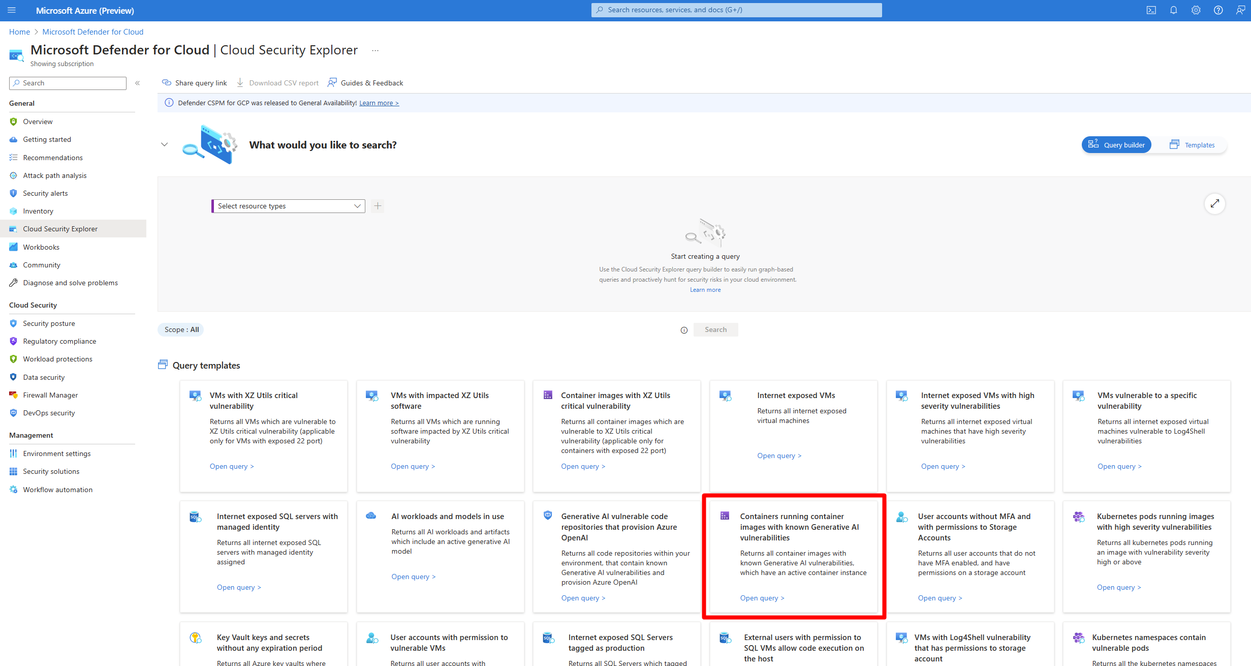 Wählen Sie die Abfragevorlage Container, die Containerimages mit bekannten generativen KI-Sicherheitsrisiken ausführen aus.