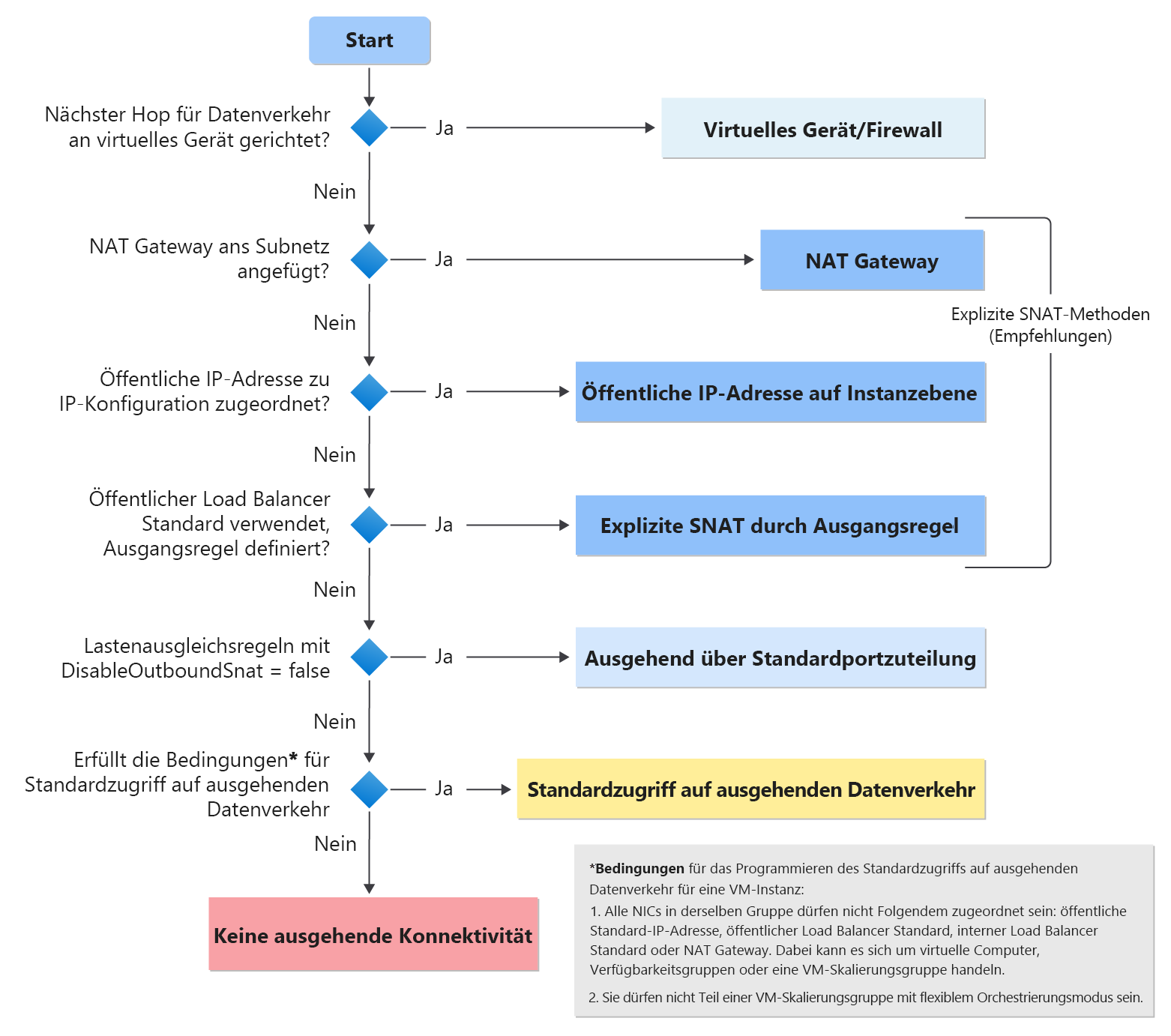 - Eine explizite Methode für den ausgehenden Datenverkehr muss für das gekennzeichnete VM/Virtual Machine Scale Set verwendet werden. Im Abschnitt oben finden Sie verschiedene Optionen.