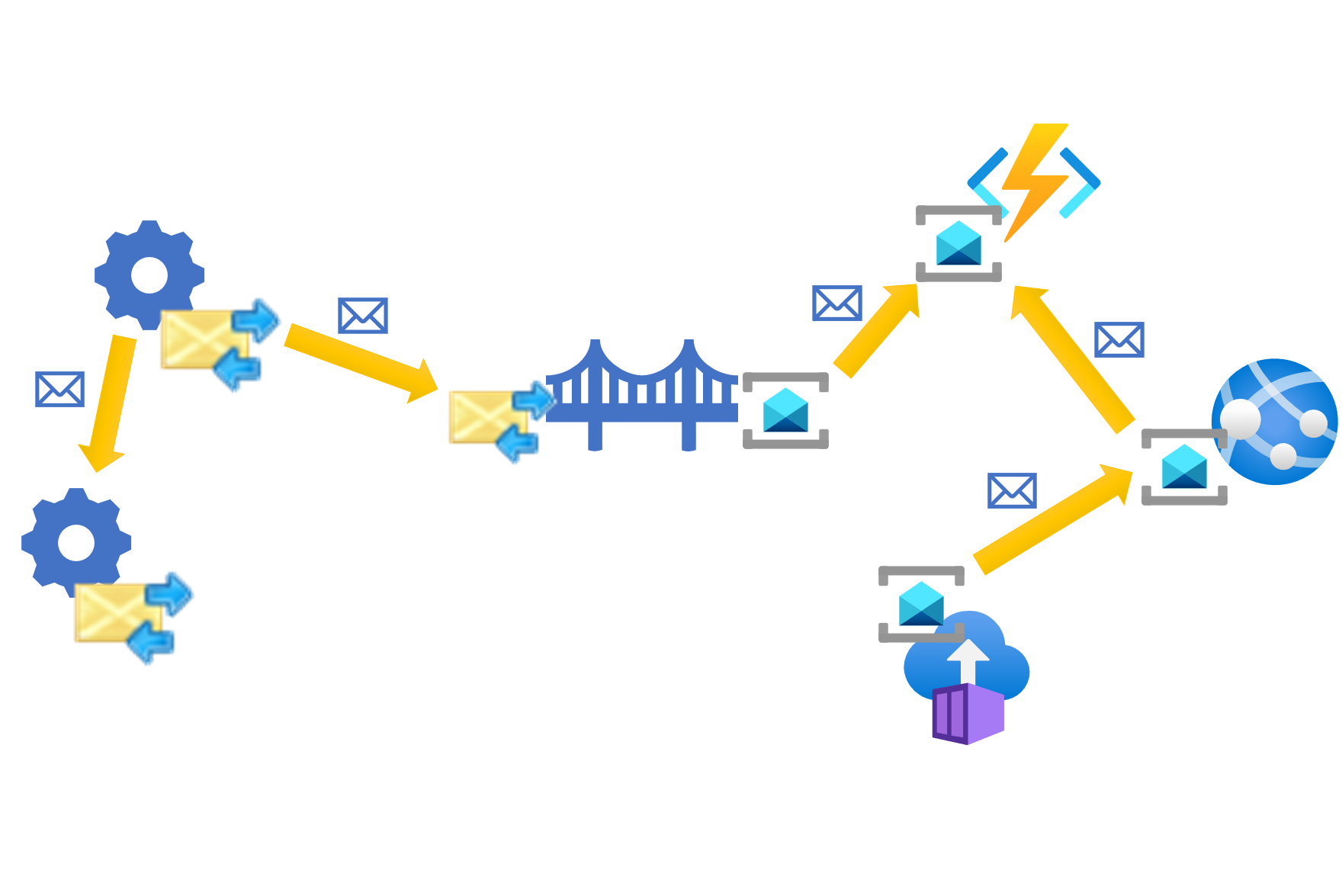 - Migrationsszenarien können flexibler sein. Endpunkte können z. B. von einer Messaginginfrastruktur zu einer anderen migriert werden, wenn es der Zeitplan zulässt, anstatt alle gleichzeitig.