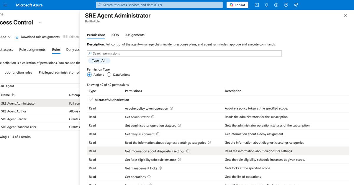 | SRE Agent Reader | Anzeigen von Threads, Protokollen, Vorfällen | Chat, Aktionen anfordern, alles ändern |